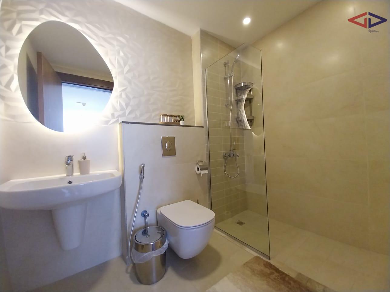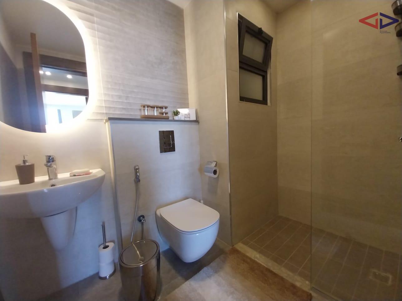 The apartment features two spacious bedrooms designed to provide privacy and relaxation. Each room offers ample natural light and functional space for storage and comfortable living. The property also includes two modern bathrooms with high-quality finishes, ensuring convenience for residents and guests alike.