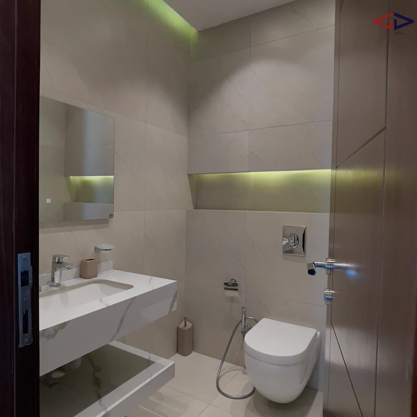 The property includes two bedrooms, one of which is a master bedroom, along with two modern bathrooms. The apartment also offers a bright and welcoming living area and a well-designed kitchen, creating a warm and functional home environment.