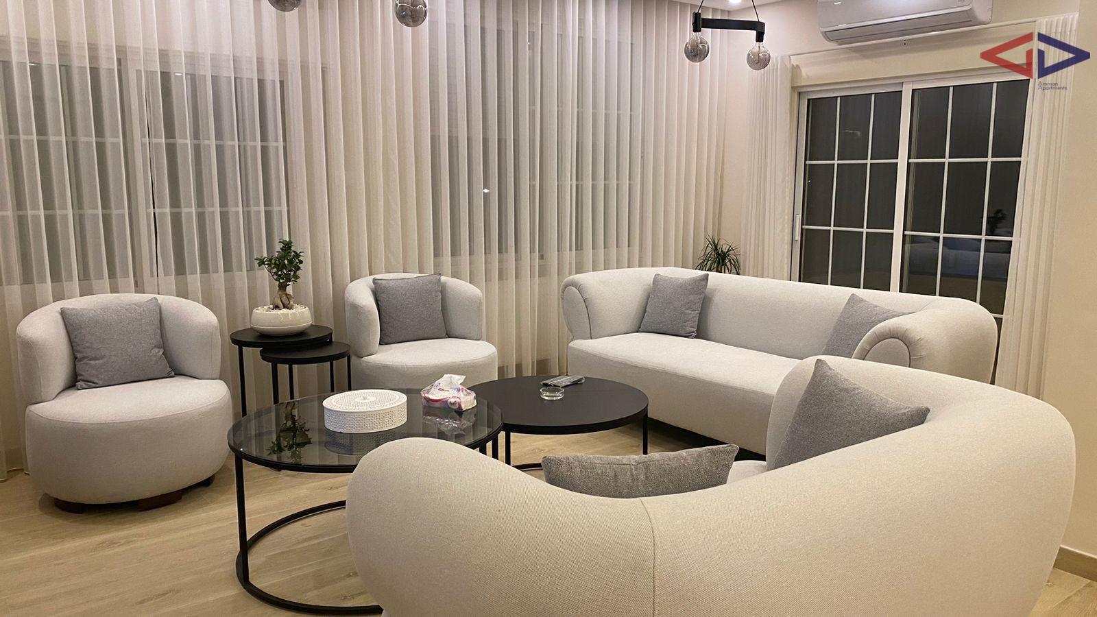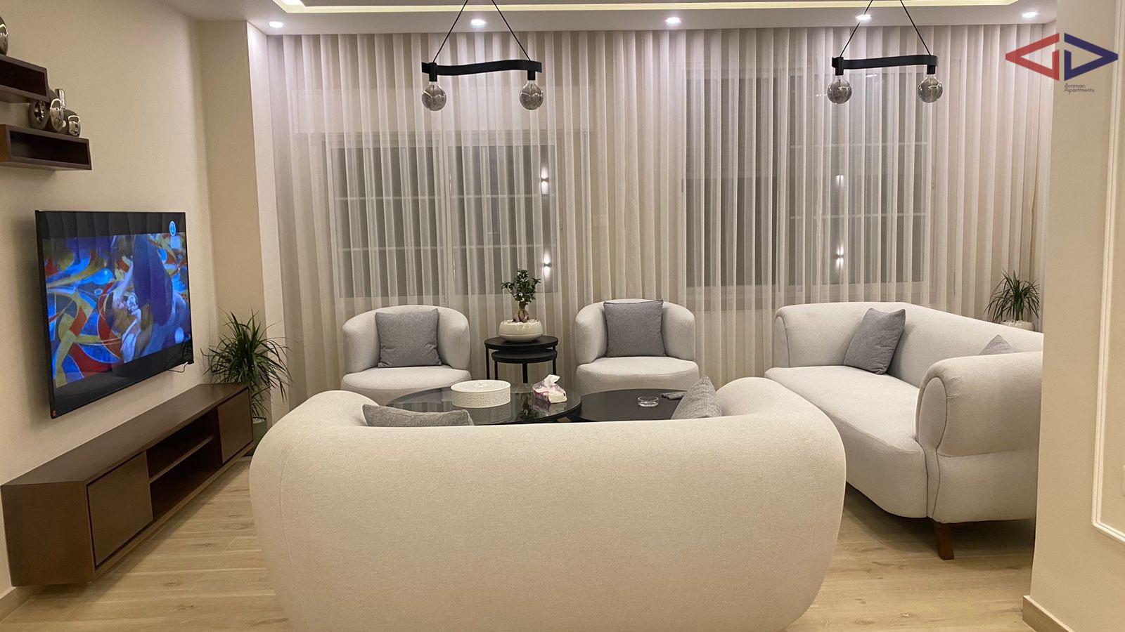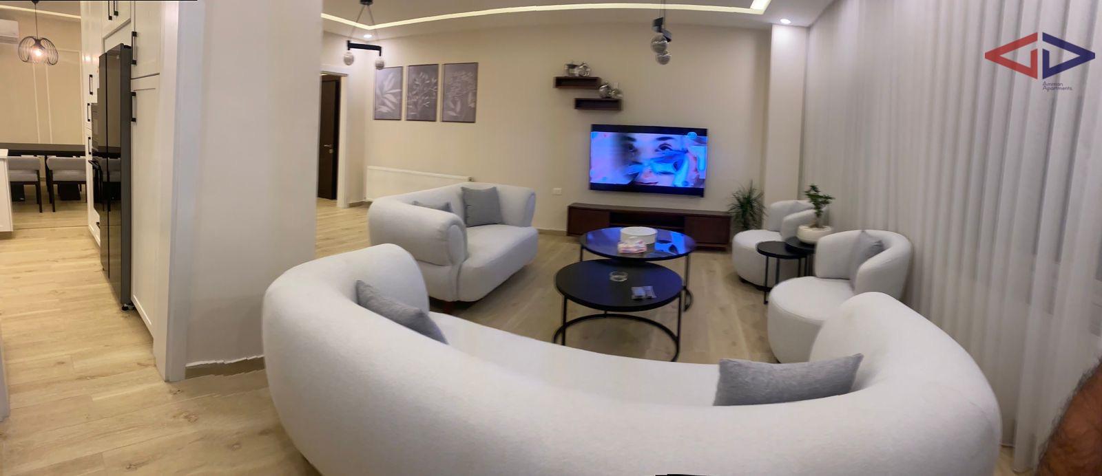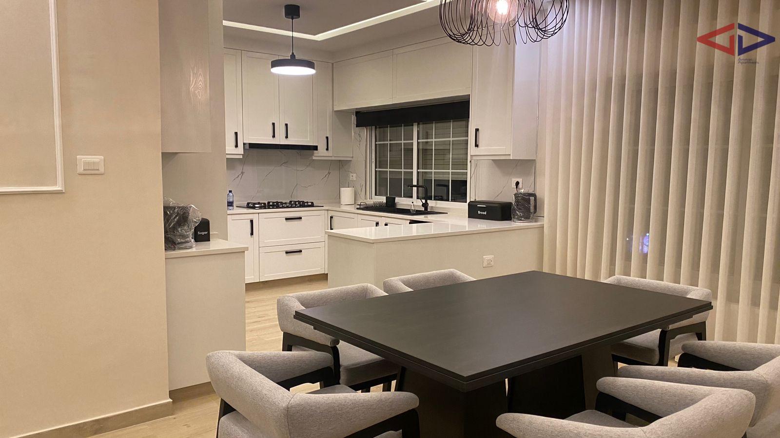 Furnished apartment for rent near the 7th Circle in Dahiyat Al Ameer Rashid, close to the Automobile Club. The apartment offers 3 bedrooms (1 master), a spacious living room, dining area, fully equipped kitchen, and a veranda. Features include double-glazed windows, heating, 3 AC units, private parking, and a storage room. Located on the 3rd floor with a total area of 150 sqm, in a quiet and convenient residential area close to services and main roads.