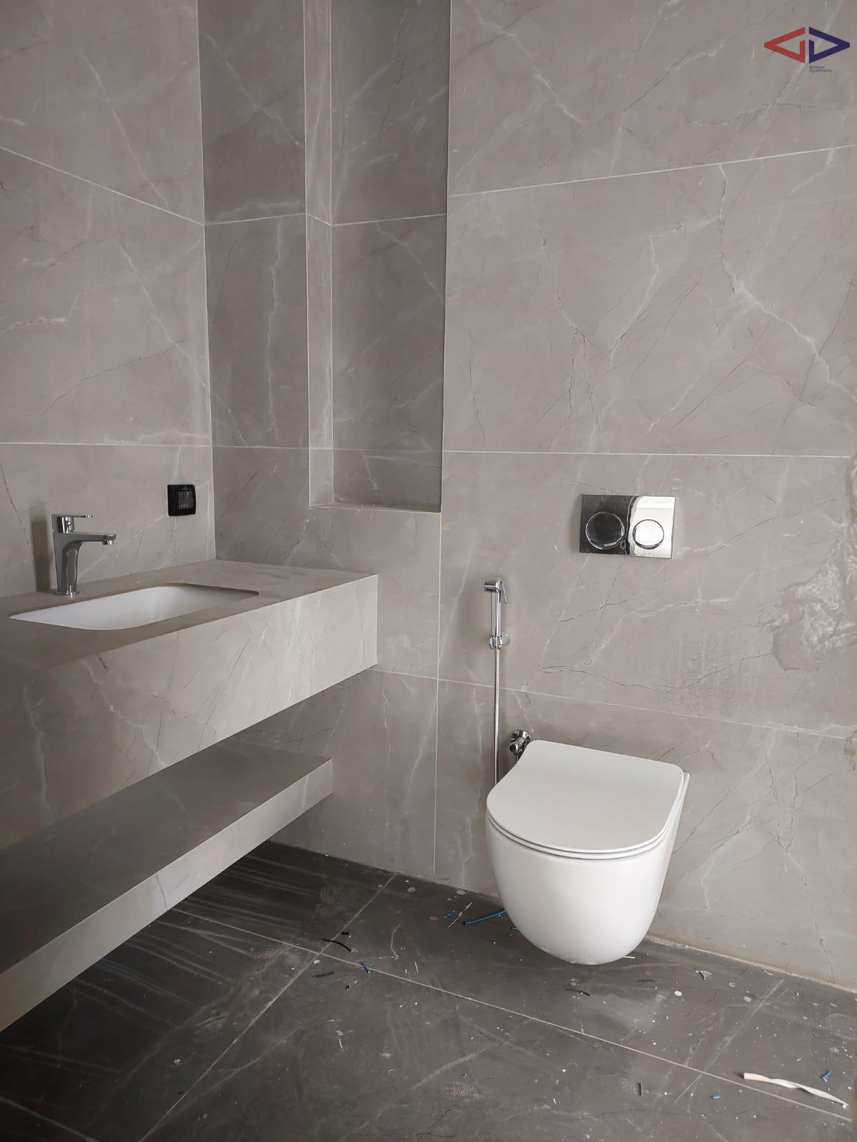 The apartment spans 155 square meters and features three bedrooms and three bathrooms, providing an ideal layout for families or professionals. The living and dining areas are spacious and well-lit, complemented by a balcony that adds natural light and a pleasant outdoor extension to the home.