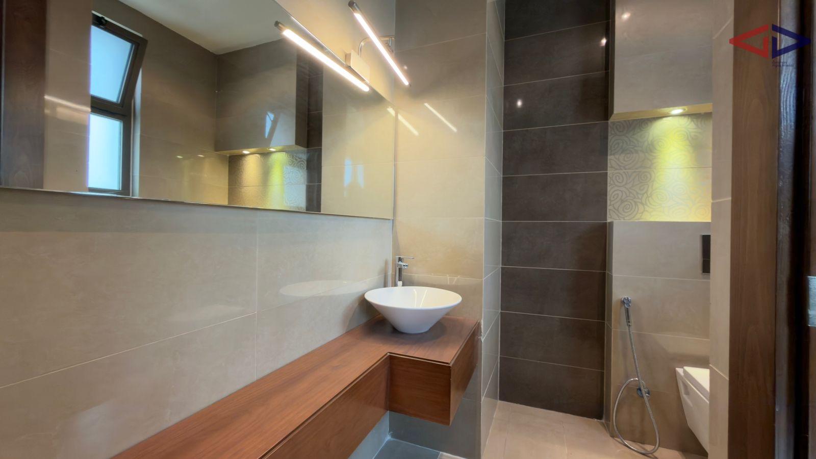 The apartment includes three spacious bedrooms, one of which is a master bedroom with enhanced privacy and comfort, along with four modern bathrooms finished to a high standard. The property also features a separate maid’s room, a practical storage room, and well-designed living spaces that create a warm and welcoming atmosphere.