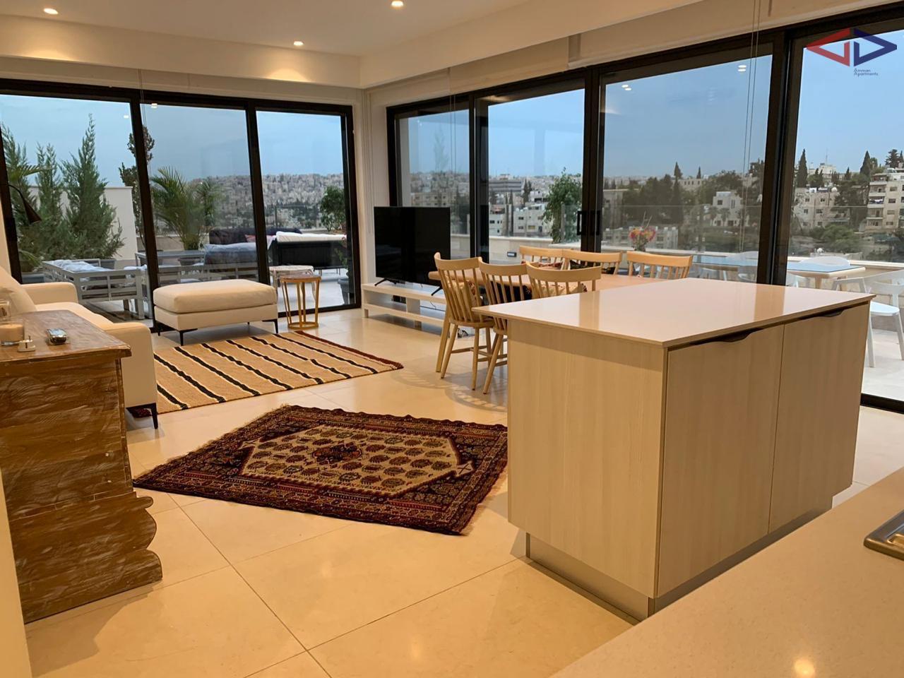 Beautiful two-bedroom rooftop apartment for long-term rent in Jabal Al Weibdeh overlooking Jabal Amman. Featuring a spacious private terrace with stunning panoramic views from sunrise to sunset, a bright open-plan kitchen, dining, and living area, and a master bedroom with en-suite bathroom. Located in one of Amman’s most desirable neighborhoods, this property offers privacy, tranquility, and modern city living — ideal for comfortable long-term residence.