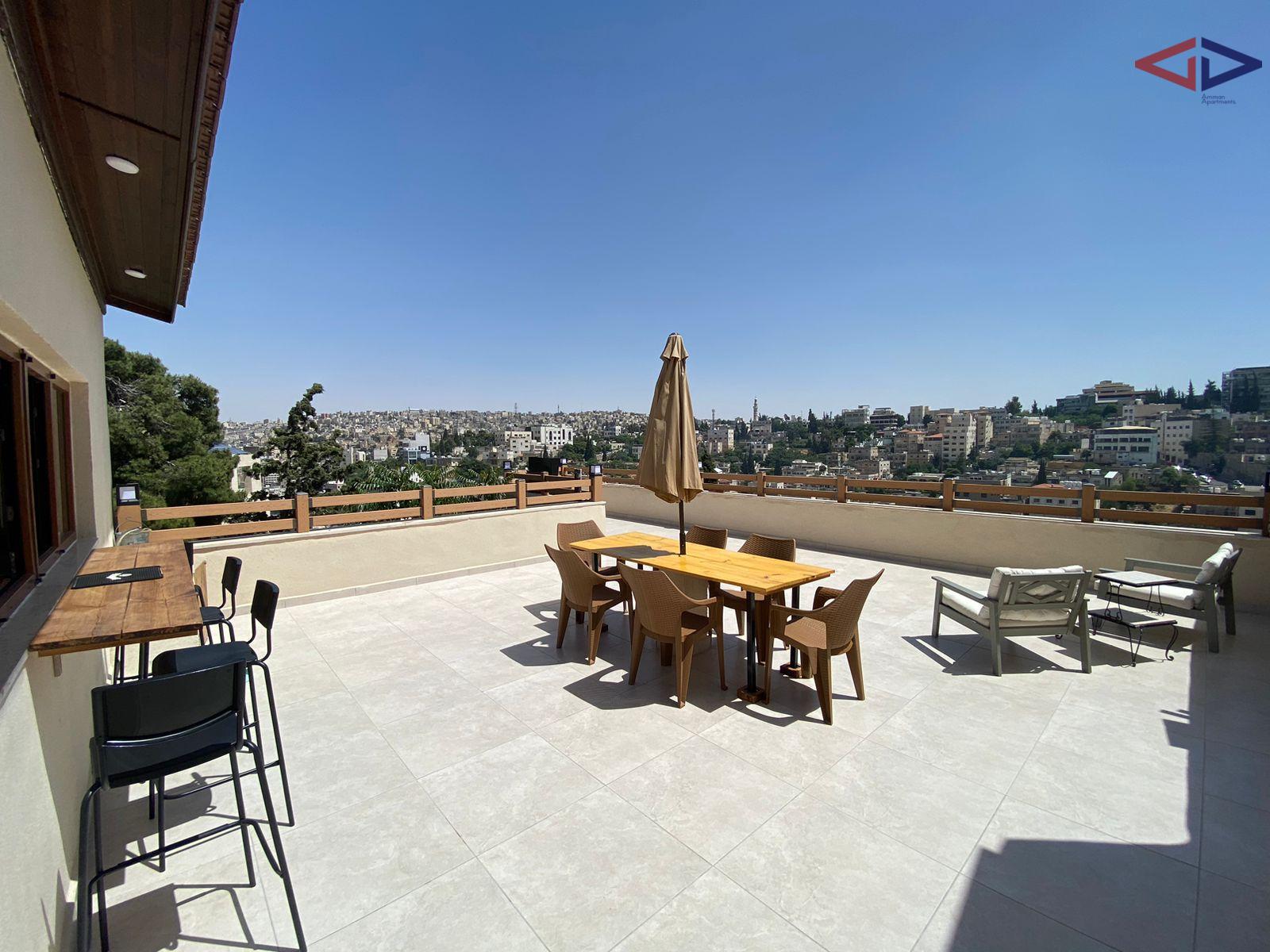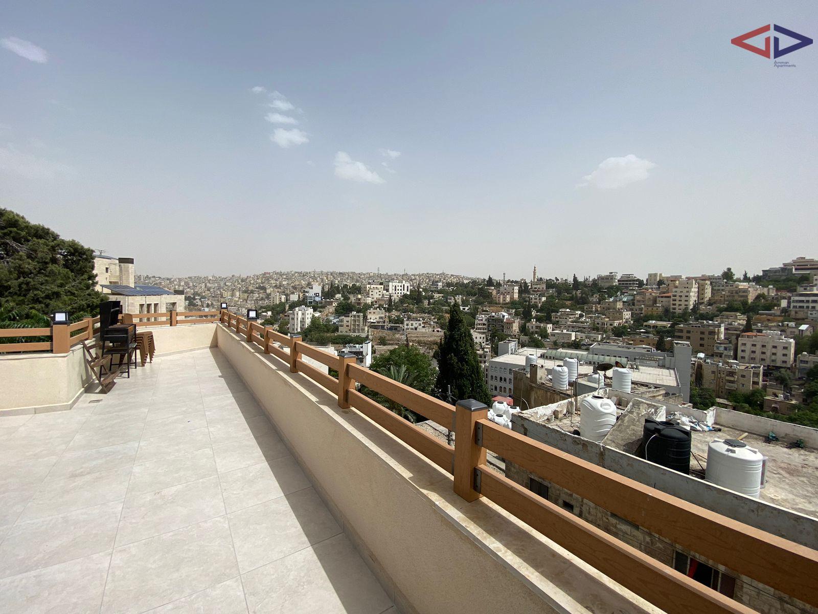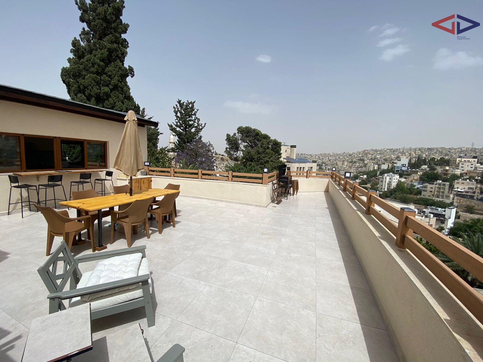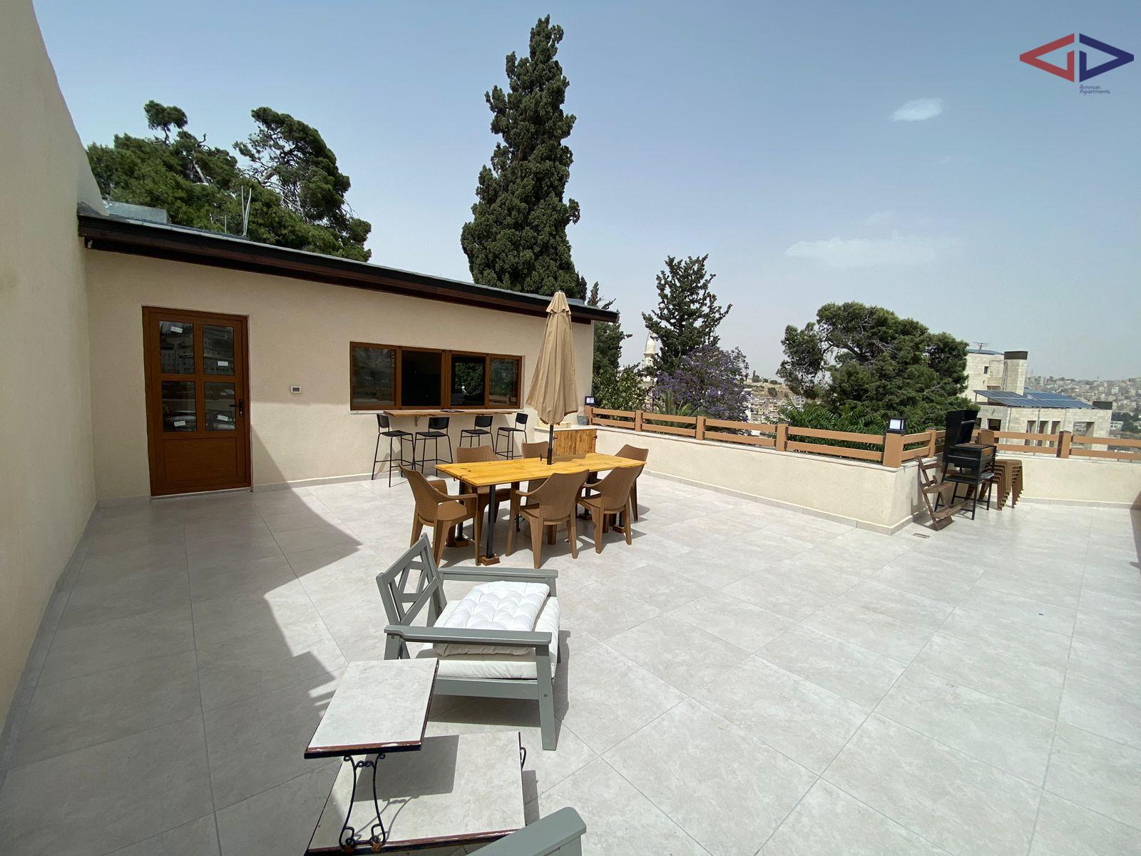 The apartment features a bright living area, a functional kitchen, two comfortable bedrooms, and a well-maintained bathroom. The highlight of the property is the private rooftop terrace, ideal for outdoor seating, entertaining guests, or enjoying Amman’s weather.