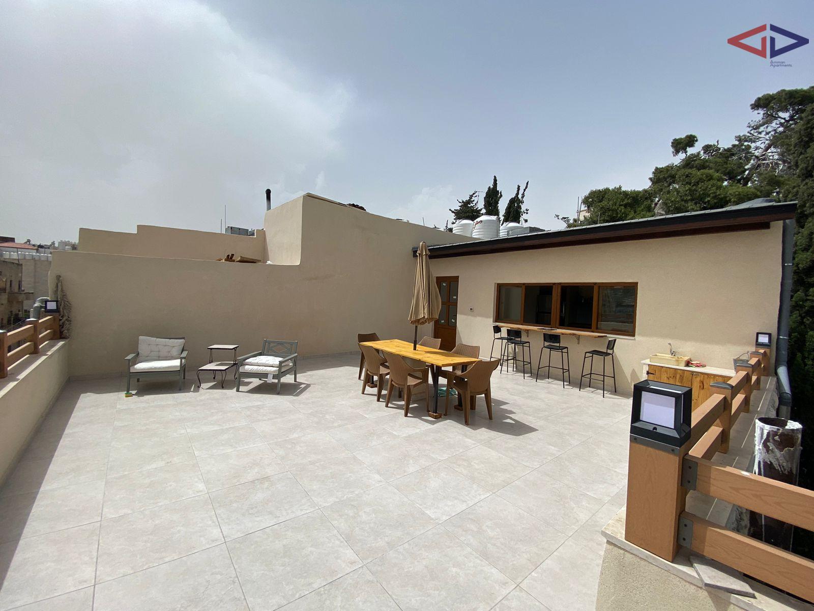 This rooftop two-bedroom apartment in Jabal Al-Weibdeh offers a unique living experience in one of Amman’s most vibrant and cultural neighborhoods.