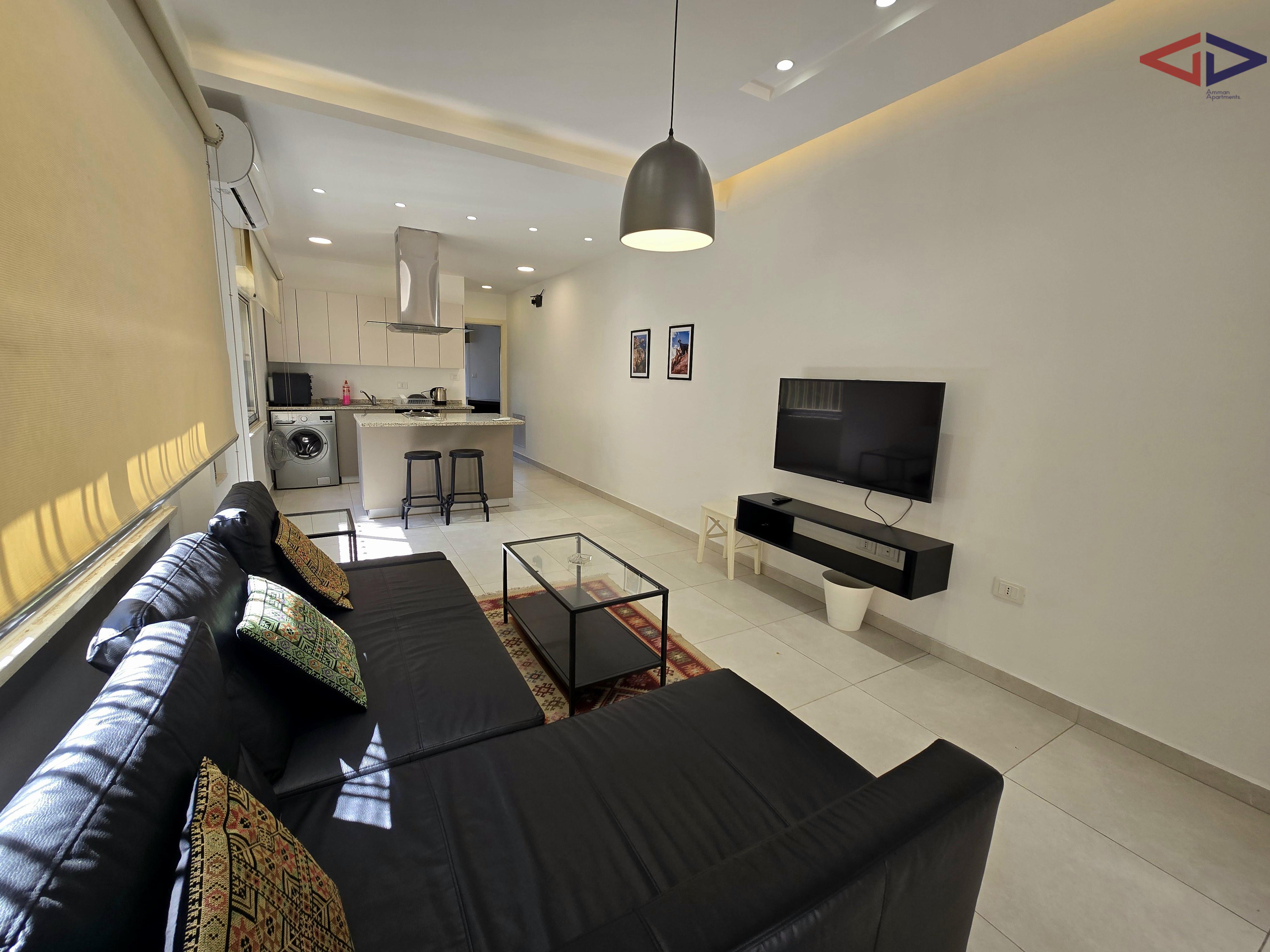 The apartment is a 5-minute drive from Abdali, Abdoun, Um Uthaina, and Old Jabal Amman, making it ideal for professionals seeking central, well-connected city living.